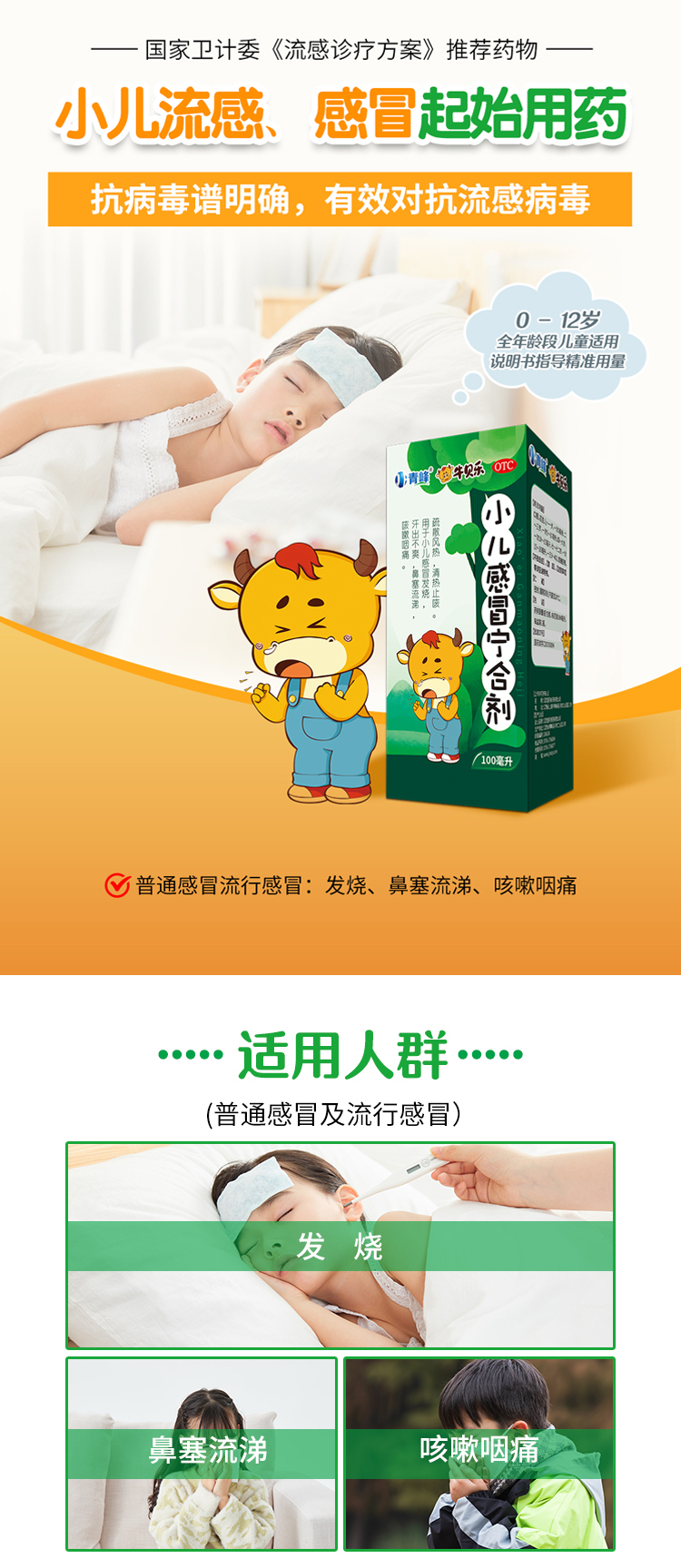 小兒流感、感冒起始用藥 國家衛計委《流感診療方案》推薦藥物 抗病毒毒譜明確,有效對抗流感病毒 0-12歲全年齡段兒童適用 說明書指導精準用量。